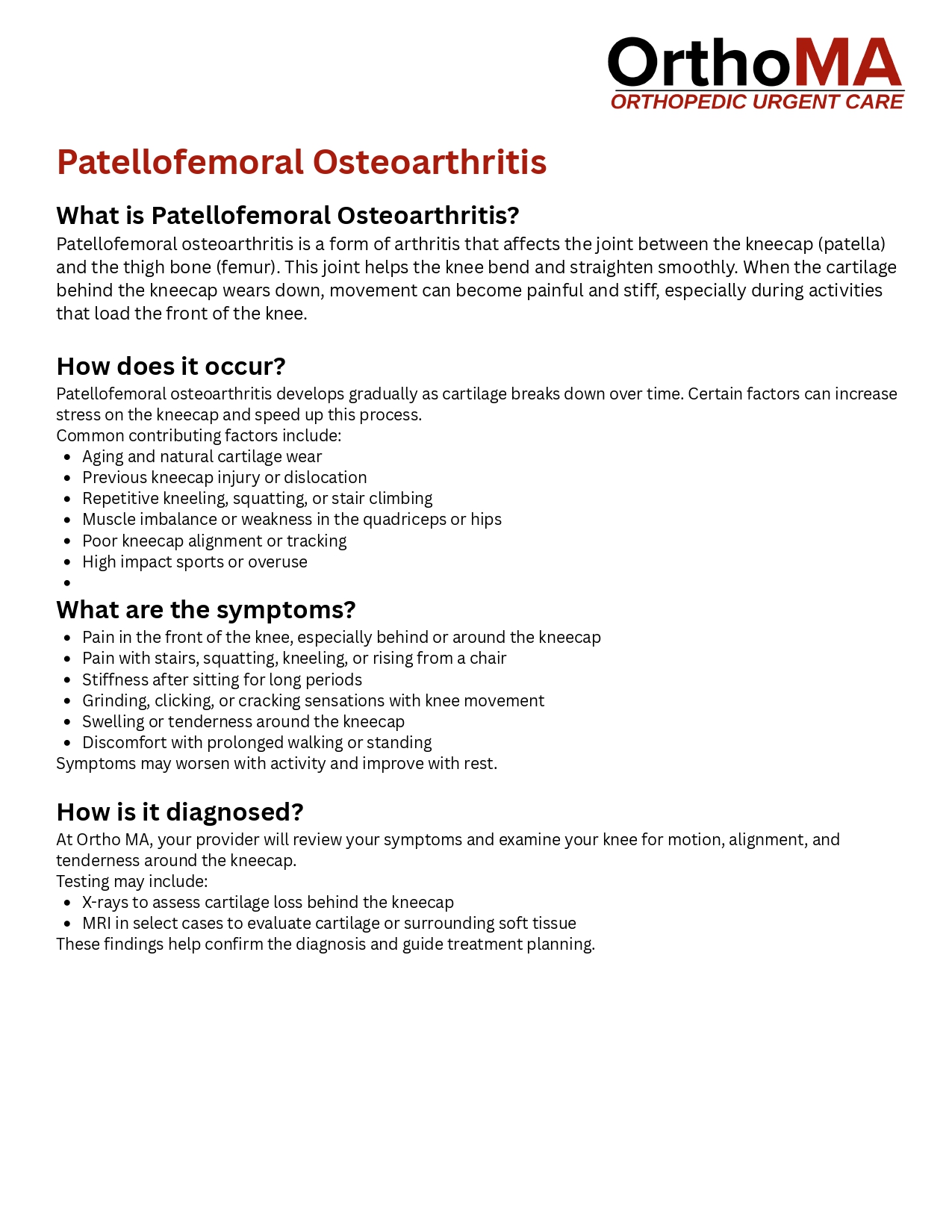 Patellofemoral Osteoarthritis Treatment